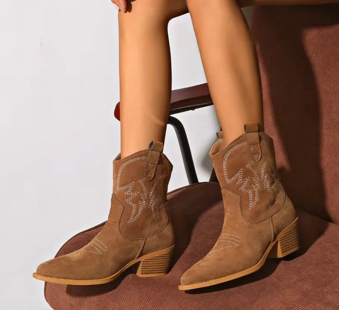 Virginia è uno scamosciato texano basso caratterizzato da un tacco largo che garantisce stabilità e comfort. I ricami dettagliati aggiungono un tocco di artigianalità raffinata, rendendo questo modello una scelta ideale per chi cerca stile e funzionalità in un unico capo. Perfetto per un look sofisticato ma pratico.